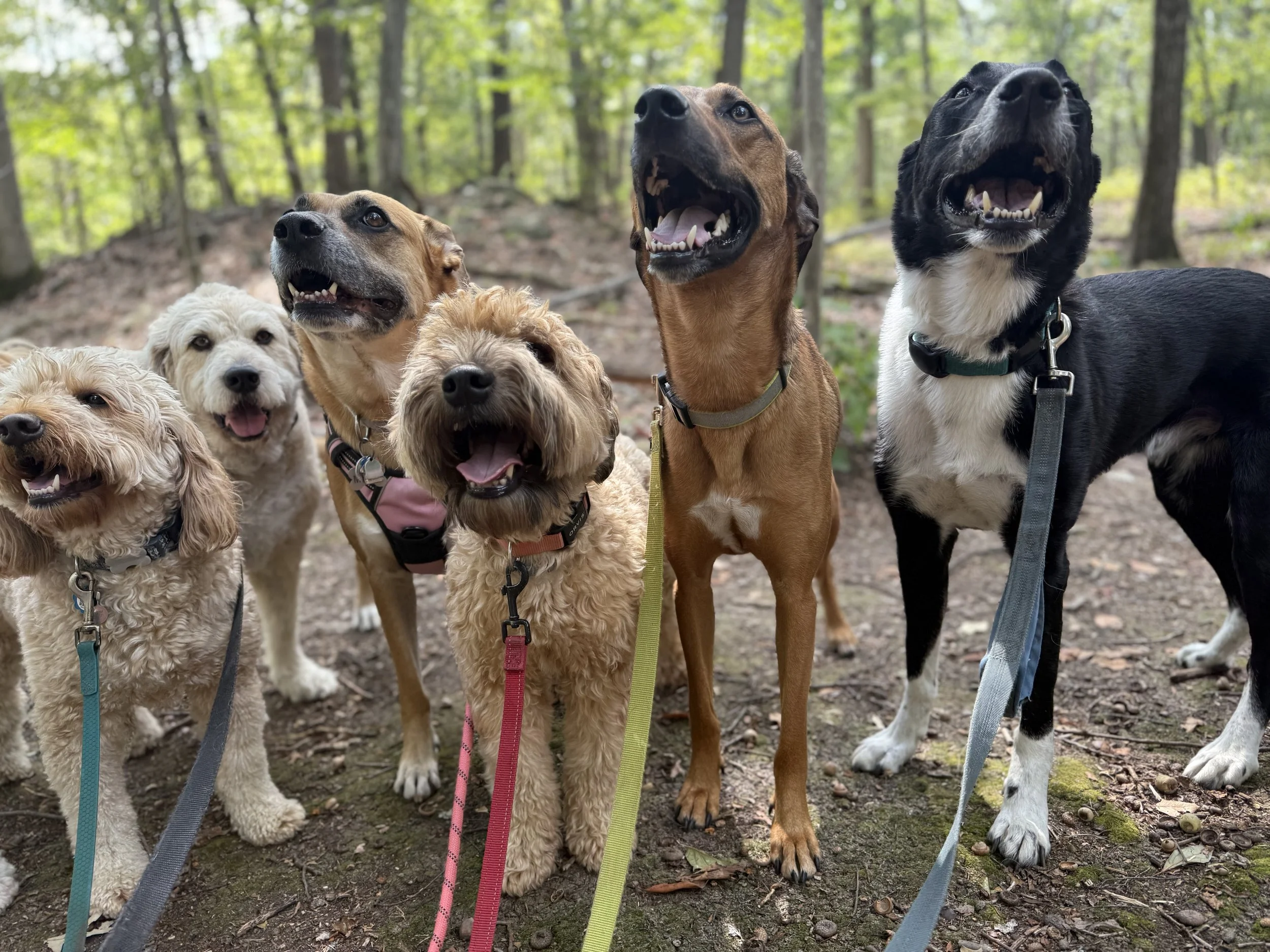 Pup Club is a daily nature hike service built around that idea. What started as hikes with Mila quickly grew into a pack hiking five days a week with dogs from all over Lower Westchester County. Our goal is simple: give dogs a consistent, structured way to get outside, explore, socialize, and burn energy in natural environments.